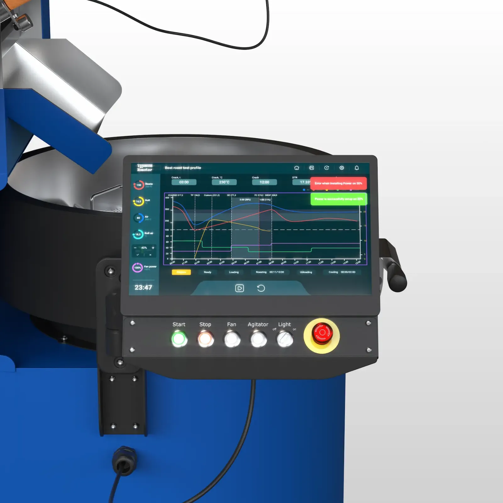 Tato zjednodušená sada funkcí představuje inovativní možnosti nového softwaru a dotykového displeje pražíren Typhoon, které přinášejí bezkonkurenční kontrolu, konzistenci a pohodlí při každém pražení.